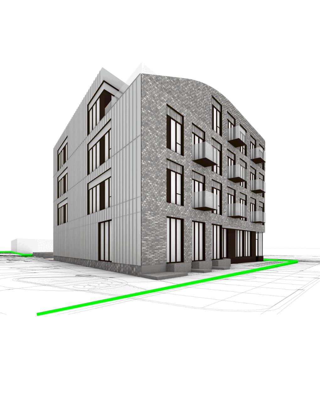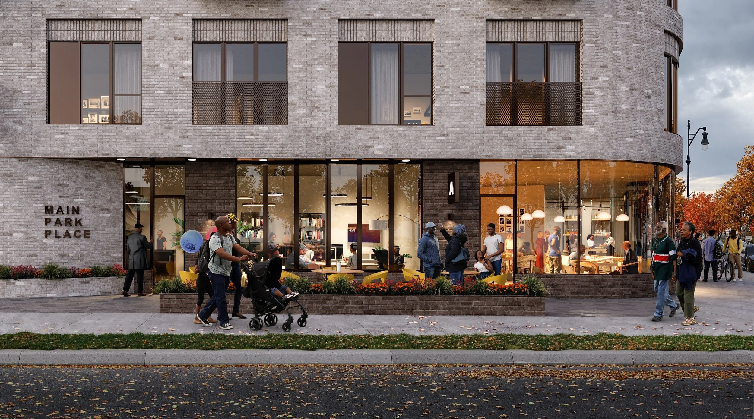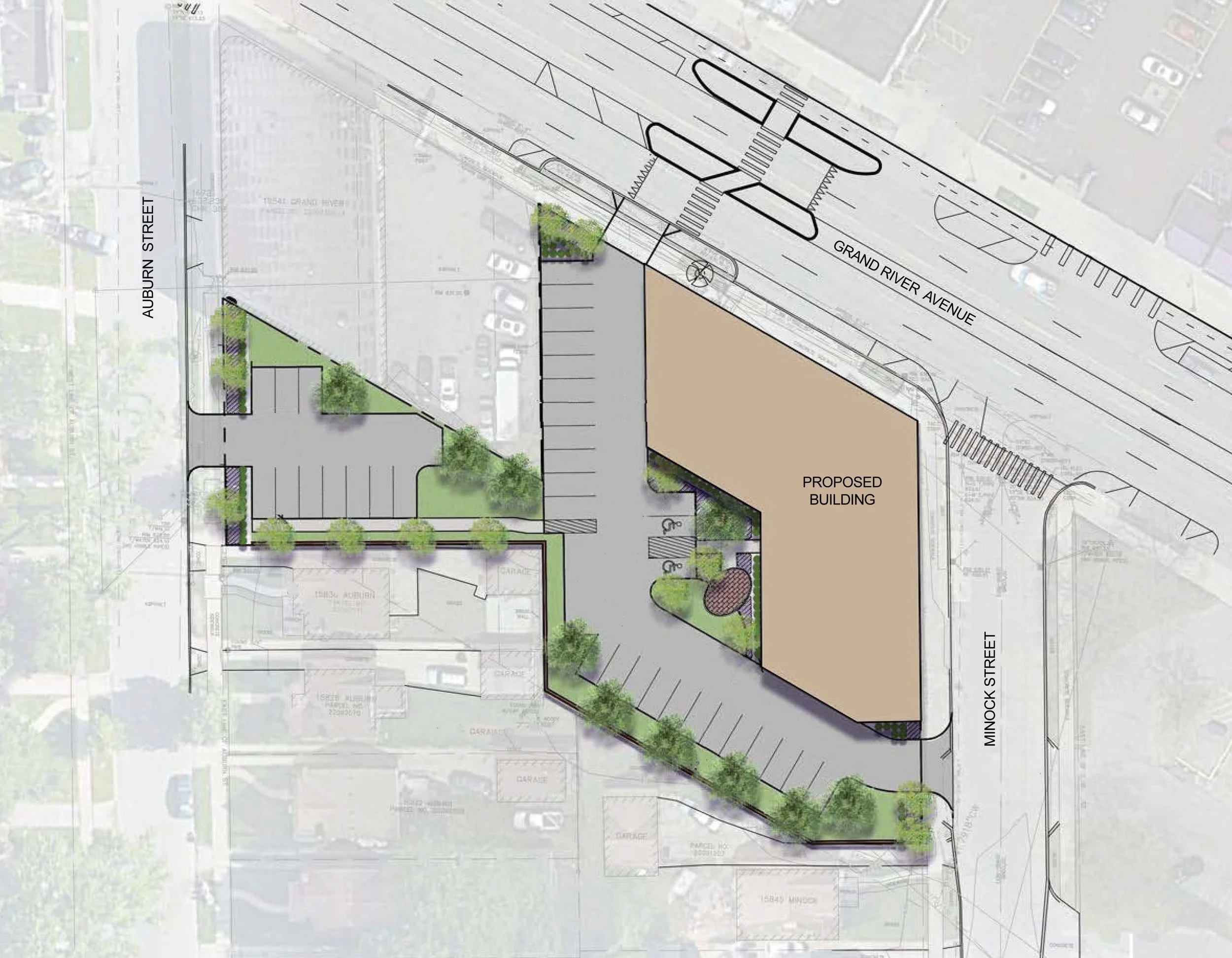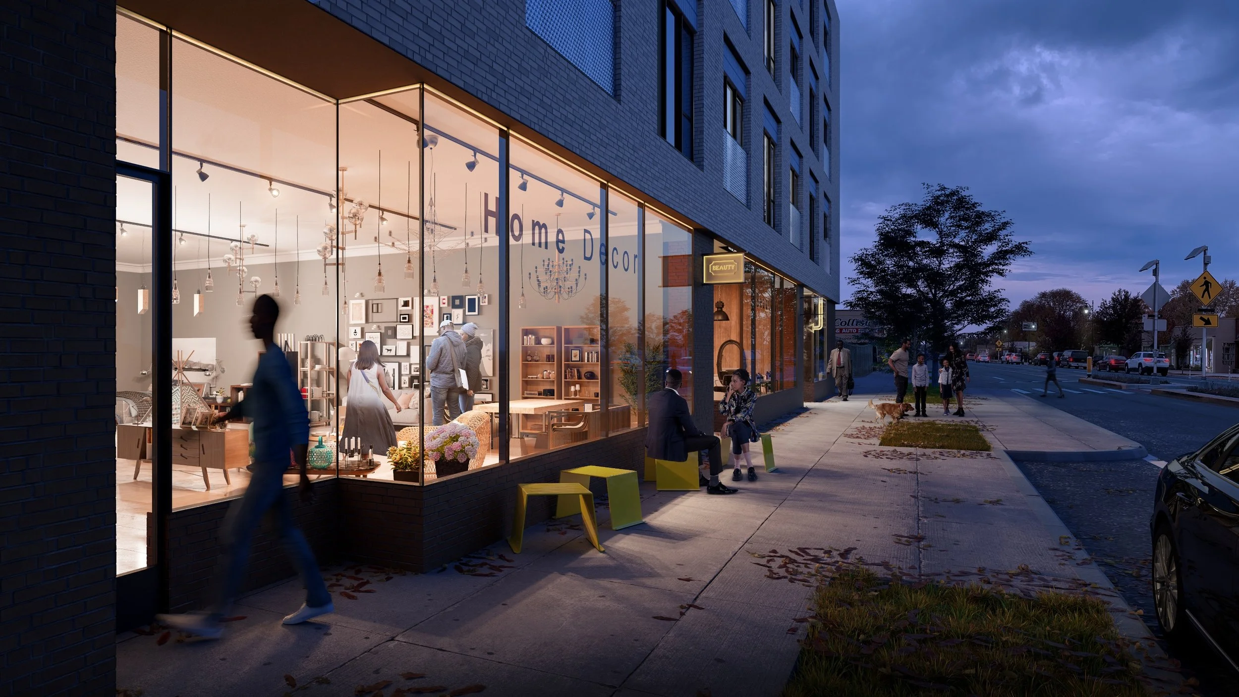 On Detroit’s west side, the community non-profit Grandmont Rosedale Development Corporation is working to transform a vacant lot into mixed-use apartments for seniors. A catalyst for future development within this walkable and growing community, the design will include 33 apartments, ground floor commercial space, and resident community space and garden. The proposed design is sensitive to the prominent views of the building from Grand River and occupies the corner of the lot to help define the urban streetscape and maximize commercial frontage. Once complete, the project will provide needed housing for seniors in the community who are looking to simplify their lifestyle, attract new residents to the neighborhood, and promote new businesses along a major Detroit main street.